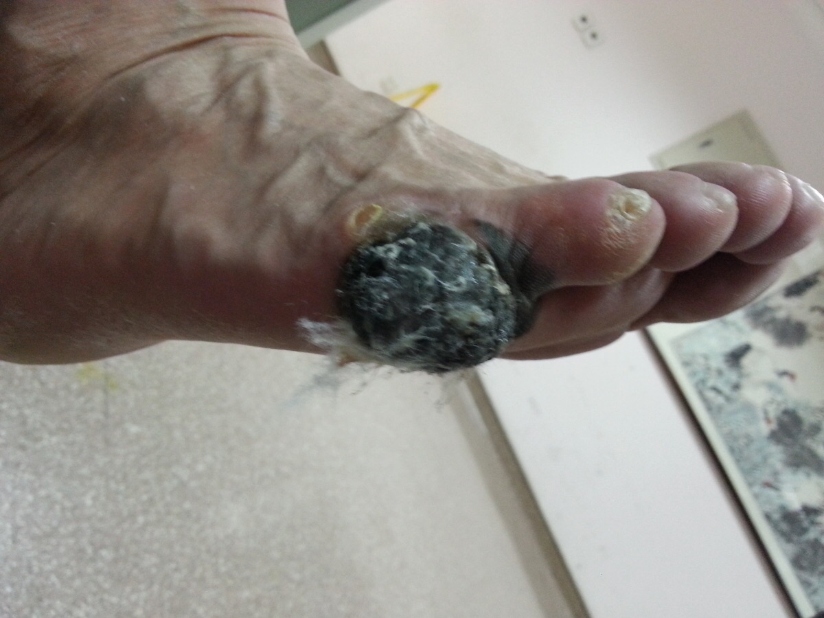 started under the nail plate, called subungal melanoma, and has progressed to involve most of the distal thumb