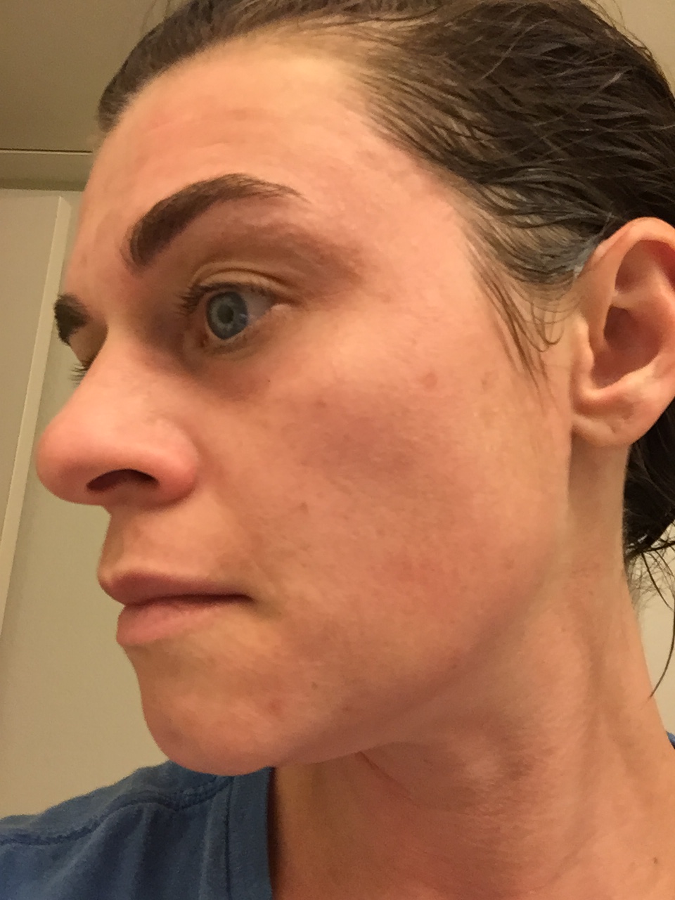 (left) First use at 45 minutes, about to rinse. (right) Second use, included decolletage, at 5 minutes and not completely dry yet.